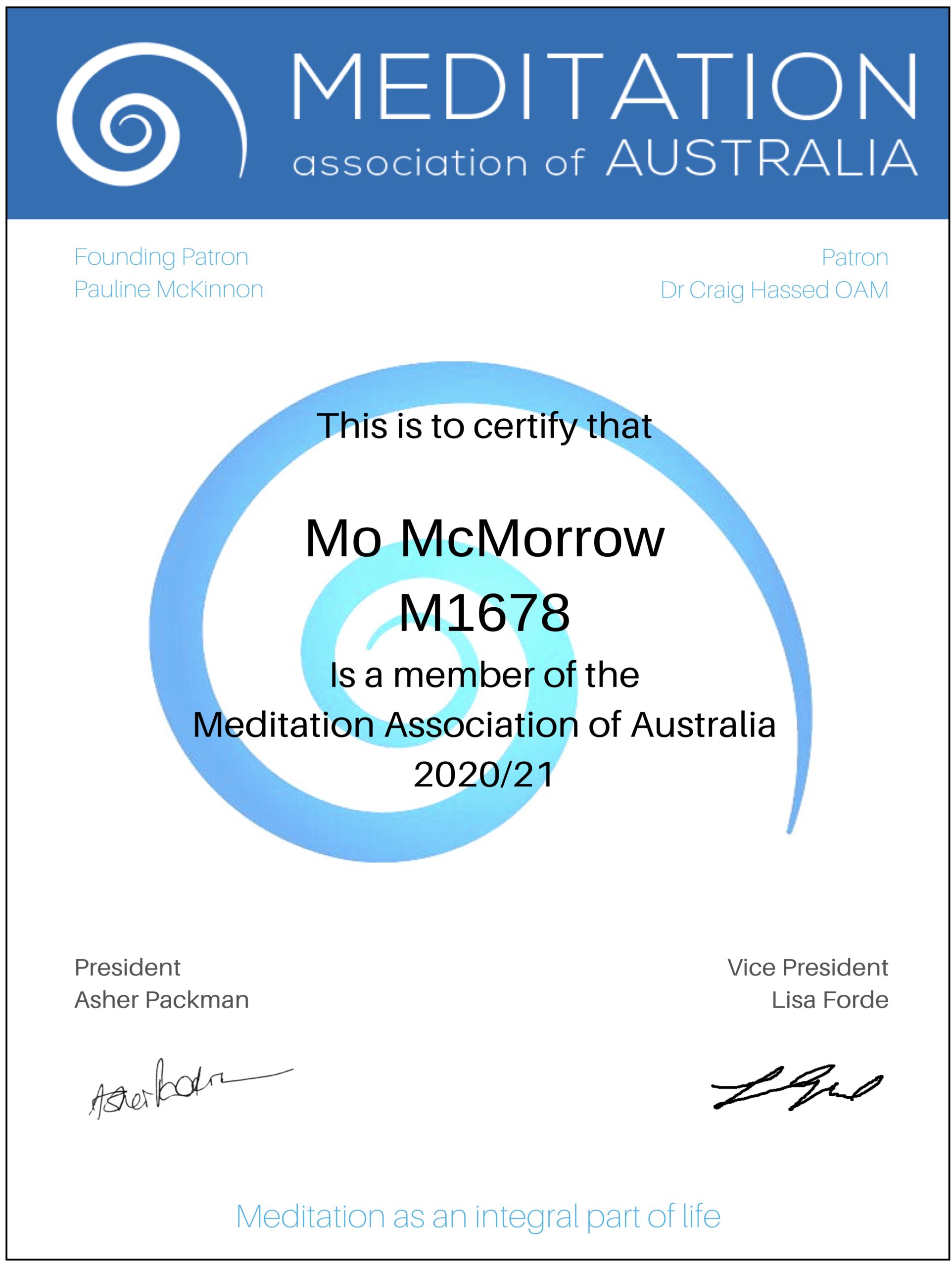 Mo began her meditation practice 25 years ago in Ireland which successfully helped her with performance anxiety allowing her to begin making her living as a performer in her 30s.