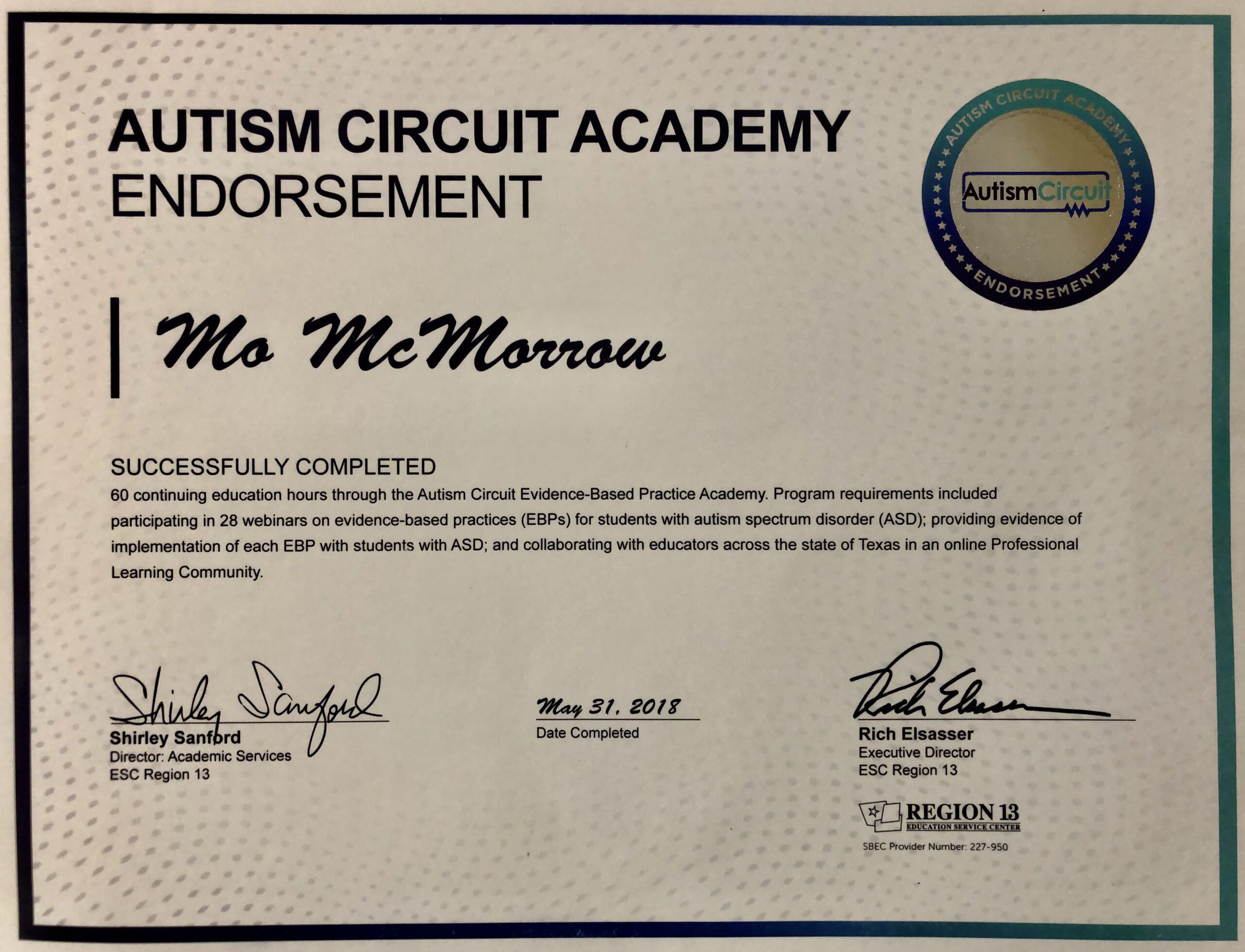 and is a certified Trauma Practicioner CTP-E, Graduate of the Autism Circuit Academy, Yoga Teacher through Breath for Change (200hrs) and a Certified Mindfulness Instructor through Mindful Schools to name a few.